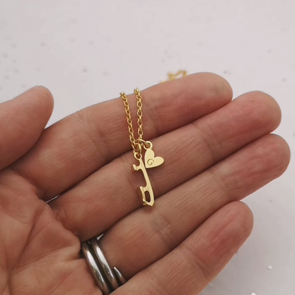 This charming necklace features a polished ice skate blade charm paired with a petite heart, which can be personalised with a single letter or simple symbol of your choice. Both charms dangle independently from a delicate chain, handcrafted in sterling silver and plated in 18ct gold for a luxurious finish.