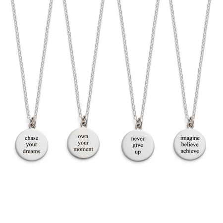 Keep motivation close during training sessions with an engraved motto on a simple ice skating pendant.